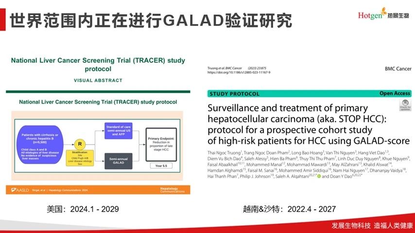“肝癌三項(xiàng)”作為國(guó)際臨床認(rèn)可的有效指標(biāo),已獲得國(guó)內(nèi)外眾多指南和共識(shí)推薦。日本通過(guò)“肝癌三項(xiàng)+超聲”篩查體系將早診率提升至62%,而中國(guó)肝癌目前早期診斷率不足30%,亟需通過(guò)普及篩查等措施縮小與國(guó)際上的差距。熱景生物基于中國(guó)病患人群背景開(kāi)發(fā)的C-GALAD模型,更契合中國(guó)肝癌高風(fēng)險(xiǎn)人群的分層管理需求,其臨床推廣對(duì)提高我國(guó)肝癌早期預(yù)警能力,改善肝癌患者生存率具有重要價(jià)值。值得一提的是,美國(guó)等國(guó)家先后啟動(dòng)了GALAD模型的前瞻性驗(yàn)證研究。在國(guó)內(nèi),熱景生物從核心優(yōu)勢(shì)出發(fā),率先啟動(dòng)了C-GALAD模型的大規(guī)模多中心研究,并積極投身于海南省衛(wèi)建委牽頭的早期肝癌篩查行動(dòng)中,以實(shí)際行動(dòng)為我國(guó)肝癌防治事業(yè)貢獻(xiàn)力量。