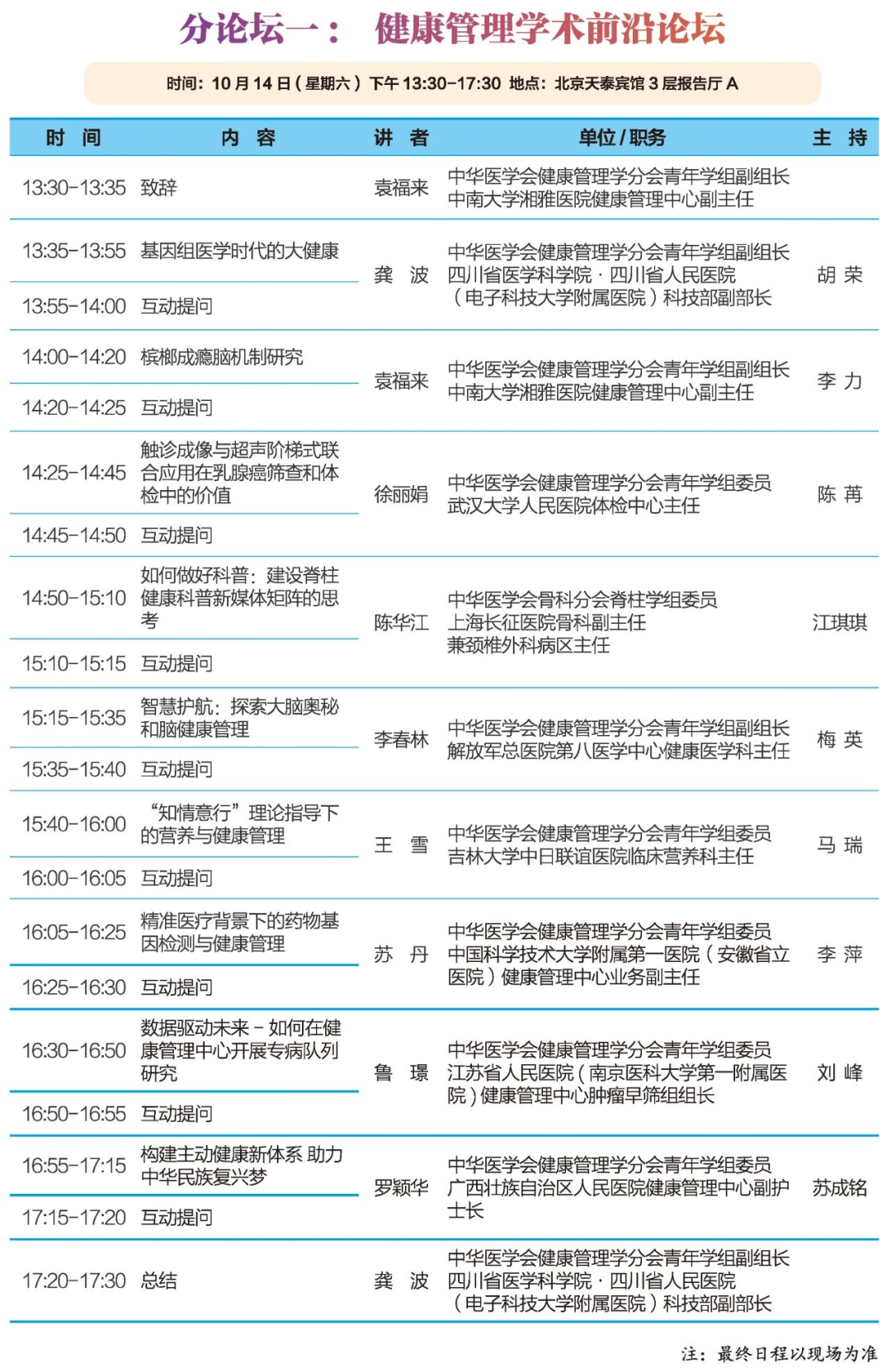 大會(huì)專題報(bào)告地點(diǎn):分論壇二 ? 健康管理學(xué)科建設(shè)論壇(三層報(bào)告廳B)