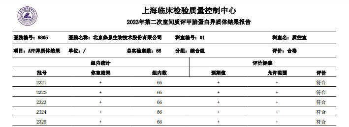 臨床檢驗(yàn)中心室間質(zhì)量評(píng)價(jià)的結(jié)果可以反映出實(shí)驗(yàn)室管理水平和檢測結(jié)果的準(zhǔn)確性、可靠性和穩(wěn)定性,而準(zhǔn)確可靠的檢測結(jié)果對(duì)患者的疾病診斷、治療和預(yù)后判斷都會(huì)產(chǎn)生直接影響。此次國家衛(wèi)生健康委臨床檢驗(yàn)中心和上海臨床檢驗(yàn)中心組織的室間質(zhì)評(píng)活動(dòng)均通過質(zhì)量評(píng)價(jià),充分彰顯了熱景生物強(qiáng)大的產(chǎn)品以及技術(shù)實(shí)力。
