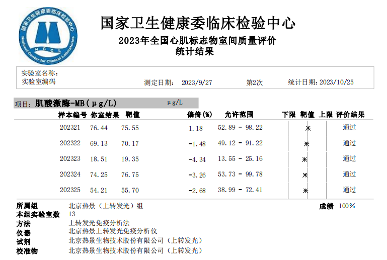 心肌標(biāo)志物室間質(zhì)評(píng)成績單(UPT、CLIA平臺(tái))