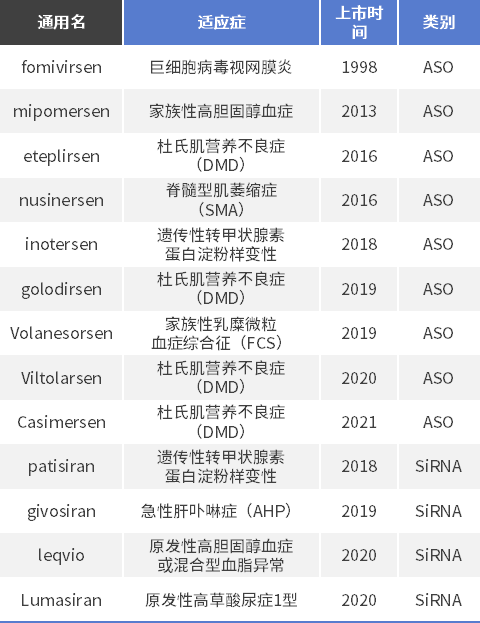 表2 全球上市的小核酸藥物(SiRNA&ASO)