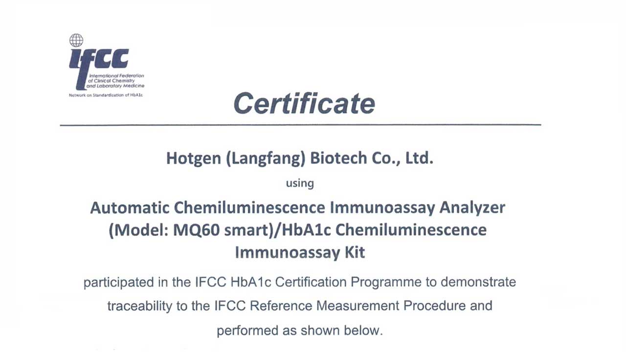 品質為先!熱景生物糖化血紅蛋白(HbA1c)產品獲IFCC認證